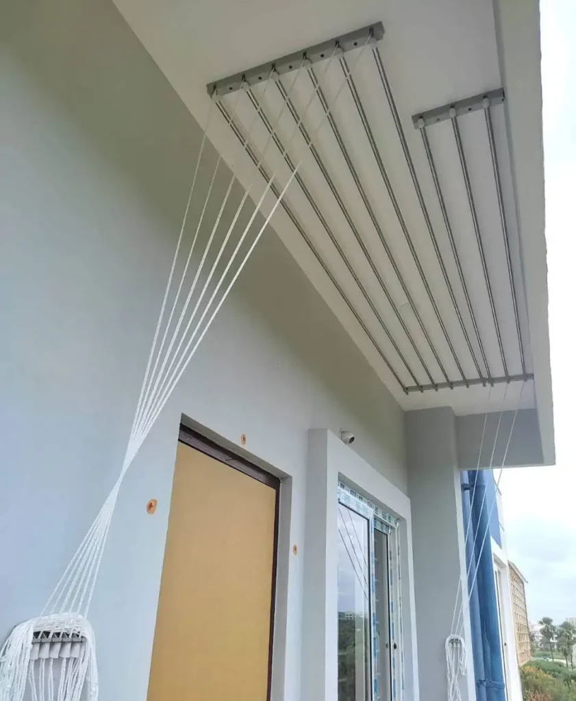 Premium rust-proof stainless steel hangers for both ceiling and balcony setups. Long-lasting and elegant design.