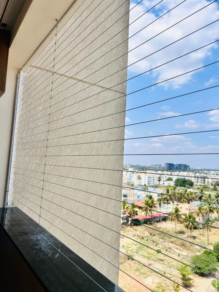 Keep your little ones safe with Invisible Grills in Manikonda. Designed with strong stainless-steel wires, they prevent children from climbing or falling while giving clear views, better airflow, and a modern look for your home.